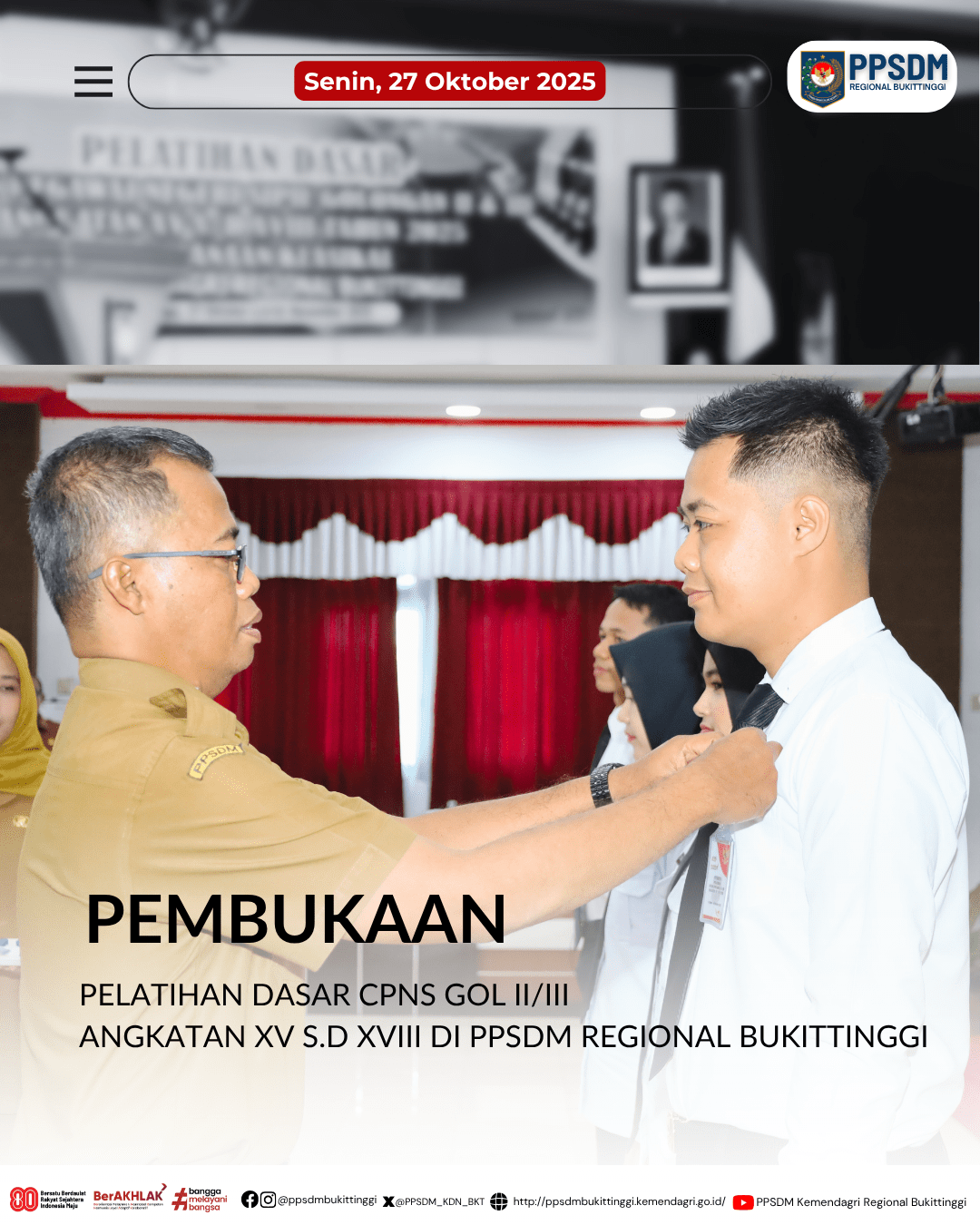 (press release).Terdapat laporan kinerja kurang baik aparatur dari masyarakat yang ditunjukkan dengan sikap tidak ramah, tidak menunjukkan empati bahkan terkesan acuh terhadap masyarakat. Kondisi tersebut diakibatkan perilaku aparatur yang masih belum menyesuaikan kode etik aparatur. BPSDM Kemendagri melalui Sarjayadi selaku Kepala PPSDM Regional Bukittinggi menyampaikan hal tersebut dalam pembukaan Pelatihan Dasar CPNS pada 24 November 2025 bertempat di Kampus PPSDM Regional Bukittinggi.