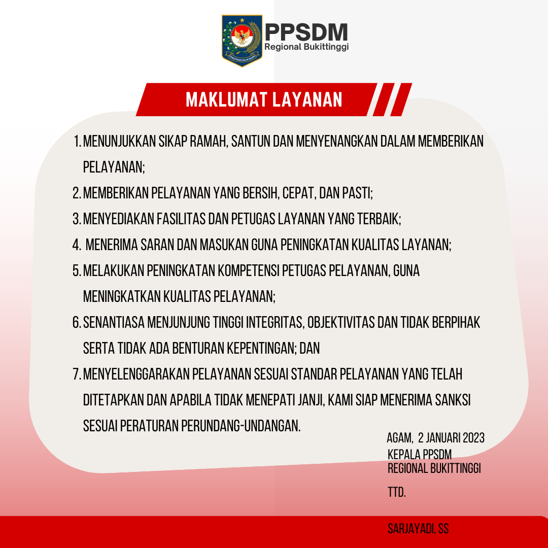 PUSAT PENGEMBANGAN SUMBER DAYA MANUSIA REGIONAL BUKITTINGGI.
