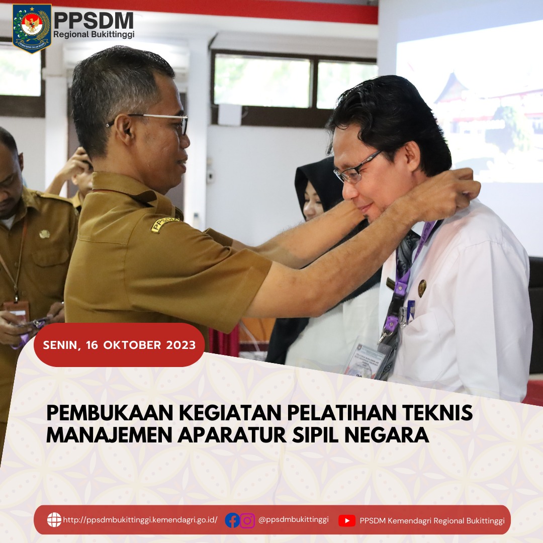 (press release). Bukittinggi – Badan Pengembangan Sumber Daya Manusia (BPSDM) Kemendagri melalui Pusat Pengembangan Sumber Daya Manusia (PPSDM) Regional Bukittinggi mengingatkan urgensi penerapan sistem merit dan netralitas aparatur menjelang tahun politik 2024. Hal tersebut disampaikan dalam pembukaan Pelatihan Teknis Manajemen Aparatur Sipil Negara (ASN) di PPSDM Regional Bukittinggi, 16 Oktober 2023.