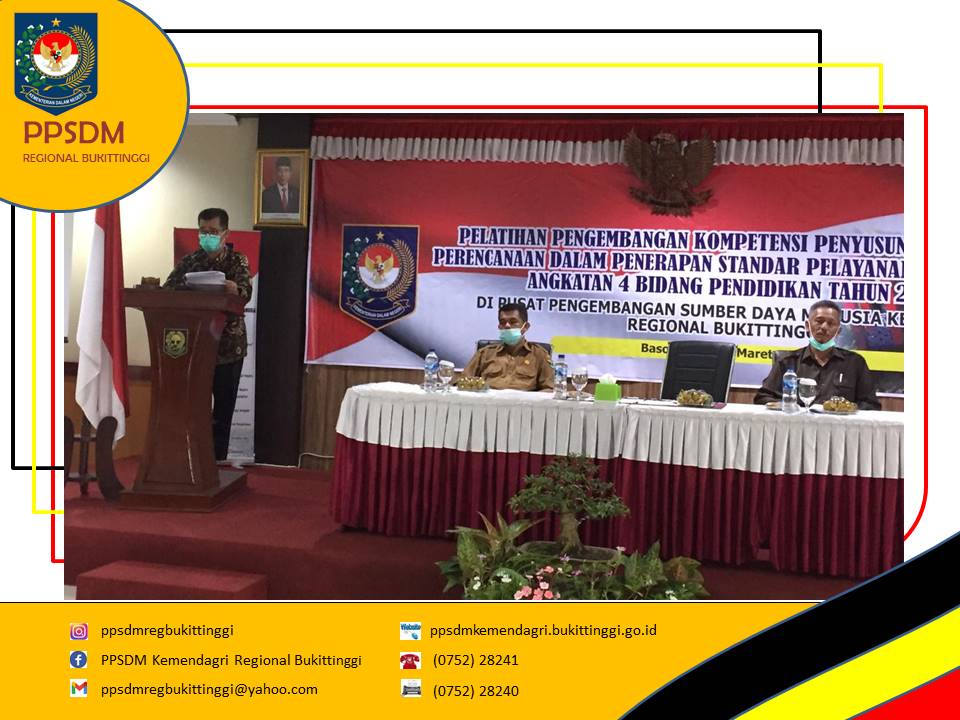 Sebagaimana angkatan sebelumnya, kegiatan yang berlangsung selama 5 hari ini dilaksanakan secara klasikal dengan menerapkan protokol kesehatan secara ketat. Peserta pelatihan SPM Angkatan 4 bidang pendidikan berjumlah 30 orang berasal dari 9 Kota/kabupaten se-wilayah kerja PPSDM Regional Bukittinggi. Dalam pelaksanaan pelatihan ini, PPSDM Regional Bukittinggi bekerja sama dengan Dinas Pendidikan Provinsi Sumatera Barat dalam hal fasilitasi tenaga pengajar.
