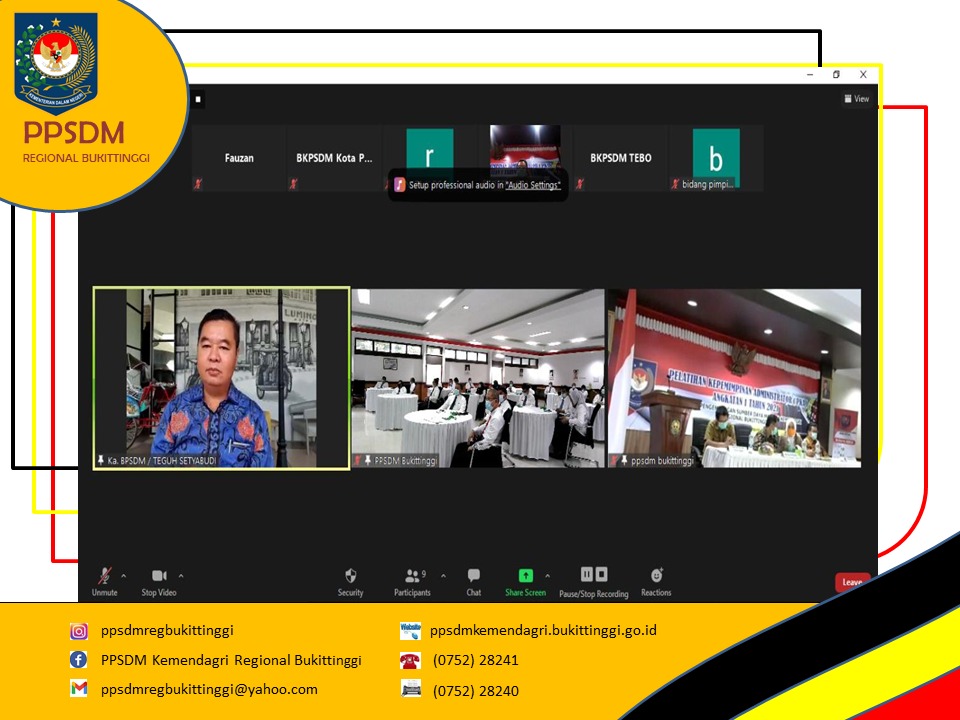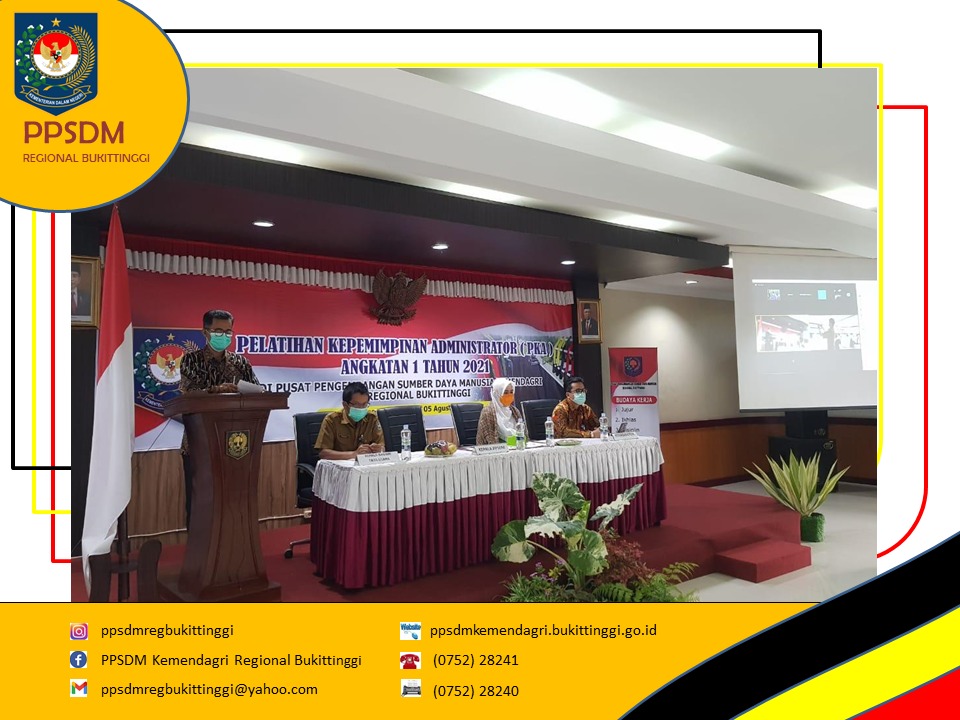 Kegiatan pembukaan diawali dengan penyampaian laporan oleh Kepala PPSDM Regional Bukittinggi, Sarjayadi. Dalam laporan disampaikan bahwa Kegiatan PKA pada tahun 2021 ini direncanakan dilaksanakan sebanyak 4 angkatan. Pelaksanaan PKA Angkatan 1 diikuti oleh 38 orang peserta yang berasal dari 1 satuan kerja vertikal yaitu Perpustakaan Proklamator Bung Hatta RI Bukittinggi dan 8 pemerintah daerah yaitu; Pemerintah Provinsi Sumatera Barat, Pemerintah Kota Pekanbaru, Pemerintah Kota Padang, Pemerintah Kota Tanjung Pinang, Pemerintah Kabupaten Kampar, Pemerintah Kabupaten Kepulauan Meranti, Pemerintah Kabupaten Sarolangun dan Pemerintah Kabupaten Tebo. Pelatihan dilaksanakan mulai dari tanggal 5 April sampai dengan 5 Agustus 2021 secara Blended Learning yaitu terdiri atas klasikal dan e-learning. Pelaksanaan pelatihan secara klasikal, dilakukan selama 5 hari yakni dari tanggal 5 april sampai dengan 9 April 2021 bertempat lingkungan Kampus PPSDM regional Bukittinggi di Baso Kabupaten Agam. Selama pelatihan dengan metode klasikal berlangsung, Penyelenggara menerapkan protokol kesehatan secara ketat seperti mewajibkan peserta memakai masker, menjaga jarak dan pelarangan untuk keluar dari lingkungan kampus PPSDM Regional Bukititnggi. Peserta juga diharuskan untuk mengikuti rapid test Antigen di Kampus PPSDM.
