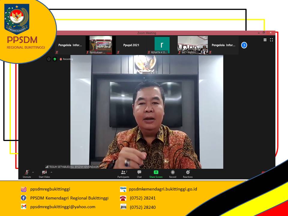 Rangkaian awal pembukaan adalah penyampaian laporan dari Kepala PPSDM Kemendagri Regional Bukittinggi, Sarjayadi menyampaikan total peserta Pelatihan PPUPD berjumlah 60 orang dengan sebaran masing masing Angkatan sebanyak 30 orang berasal dari 16 Instansi yaitu; Pemerintah Kabupaten Aceh Singkil, Pemerintah Kabupaten Deli Serdang, Pemerintah Kota Padang Sidempuan, Pemerintah Kabupaten Tapanuli Selatan, Pemerintah Provinsi Sumatera Barat, Pemerintah Kabupaten Padang Pariaman, Pemerintah Kota Solok, Pemerintah Kabupaten Sijunjung, Pemerintah Kabupaten Dharmasraya, Pemerintah Kabupaten Tanah Datar, Pemerintah Kabupaten Siak, Pemerintah Kabupaten Kuantan Singingi, Pemerintah Kabupaten Indragiri Hilir, Pemerintah Kota Pekanbaru, Pemerintah Kabupaten Rokan Hulu dan Pemerintah Kota Lubuklinggau. Selanjutnya mengenai kegiatan akan berlangsung dari 21 April sampai dengan 5 Mei 2021 dengan fasilitator adalah dari Inspektorat Jenderal Kemendagri dan BPSDM Kemendagri.