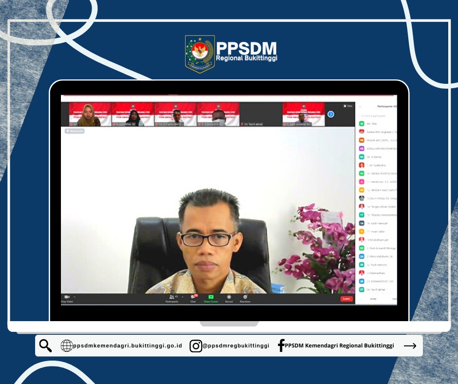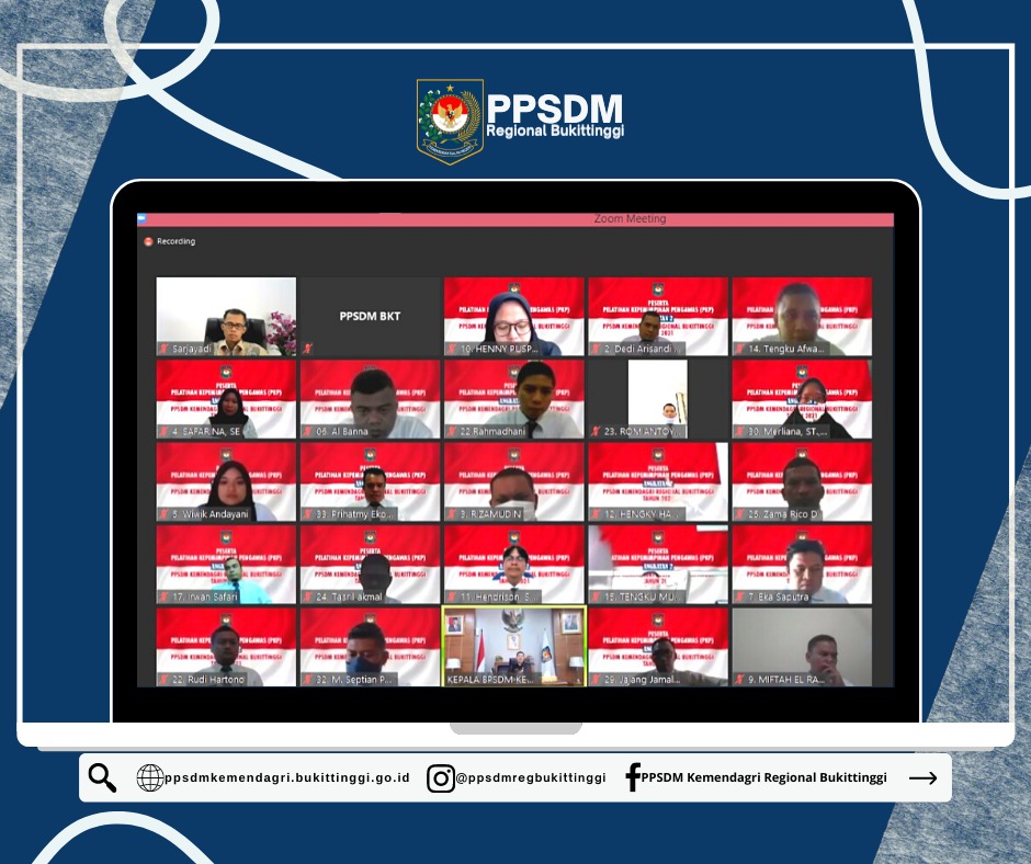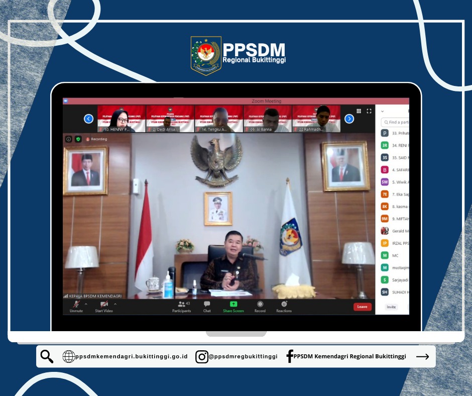 Rangkaian kegiatan selanjutnya adalah Arahan dari Kepala Badan Pengembangan Sumber Daya Manusia Kementerian Dalam Negeri Republik Indonesia, Teguh Setyabudi, dalam arahannya Kepala BPSDM menyampaikan bahwa apabila angka Covid-19 di Kota Bukittinggi masih terus meningkat maka diharapkan semua kegiatan dilaksanakan secara Blended Learning. Kepala BPSDM juga menghimbau kepada peserta pelatihan, “Mari kita tingkatkan penggunaan IT, untuk menunjang pola kinerja yang sedang terjadi saat ini, jangan gaptek, jangan bekerja secara linear, berpikirlah dengan pola pikir baru. Sebagai PNS kita dituntut oleh pimpinan untuk lebih lincah, cepat, mempunyai terobosan, inovatif, lebih fleksibel, dan luwes. Dengan kondisi Pamdemi Covid-19 ini kita semua diuji apakah kita akan bisa memiliki terobosan baru, semangat dan daya juang atau hanya terlena dengan kondisi ini hingga tidak dapat melakukan apapun. Pimpinan harus mampu mengoptimalkan sumber daya, bukan hanya sumber daya manusia, tetapi juga sumber daya lainnya”.