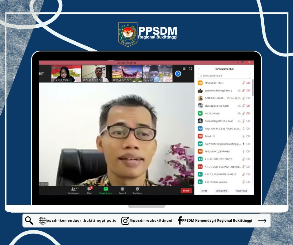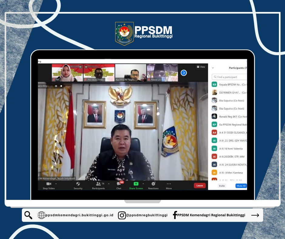 Kegiatan pembukaan diawali laporan oleh Kepala PPSDM Kemendagri Regional Bukittinggi, Sarjayadi. Dalam laporan dijelaskan bahwa pelaksanaan kegiatan berbeda dengan angkatan sebelumnya, kegiatan yang berlangsung mulai dari tanggal 5 Juli sampai dengan 17 Juli 2021 ini dilaksanakan dengan metode e-Learning. Kegiatan pelatihan dibuka sebanyak 2 angkatan dengan jumlah peserta masing-masing angkatan adalah 35 orang, sehingga total peserta berjumlah 70 orang berasal dari 13 Instansi Pemerintah yaitu: Provinsi Jambi, Provinsi Aceh, Kabupaten Muko-muko, Kabupaten Agam, Kabupaten Pasaman, Kabupaten Indragiri Hulu, Kabupaten Nias Utara, Kabupaten Siak, Kabupaten Empat Lawang, Kota Banda Aceh, Kota Tanjung Balai, Kota Bengkulu, dan Kabupaten Rejang Lebong.