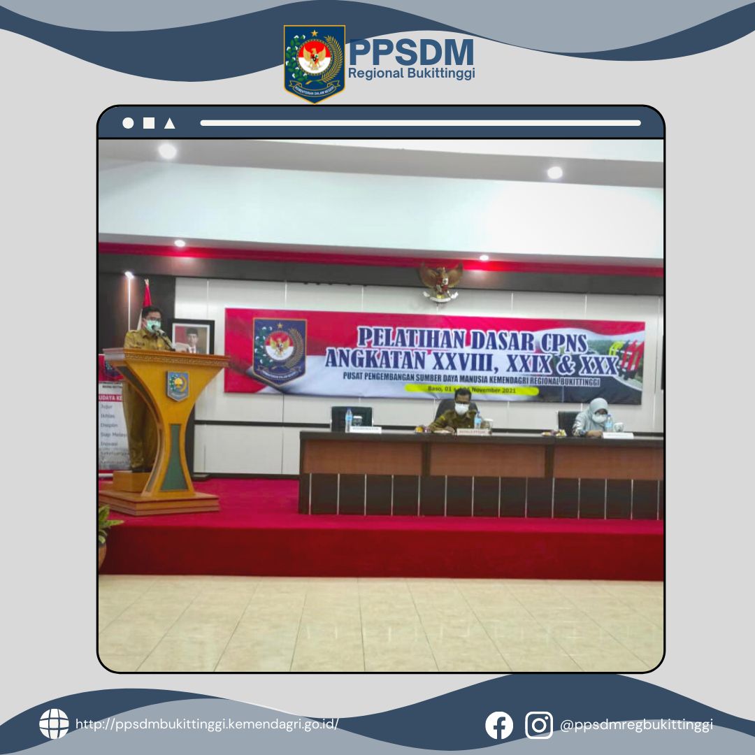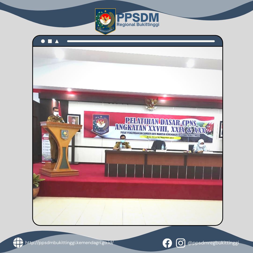Kegiatan pembukaan di awali dengan laporan oleh Koordinator Pelatihan, Defrimen, yang menyampaikan bahwa Pelatihan Dasar (Latsar) CPNS Angkatan 28 s.d 30 Tahun 2021 dilaksanakan dengan metode Blended Learning, dimana terdiri atas 3 tahapan yaitu tahapan pertama pada tanggal 12 s.d 7 September 2021 dengan metode Distance learning , tahapan kedua tanggal 8 September s.d 29 Oktober 2021 masa Habituasi di tempat kerja, dan tahapan 3 tanggal 1 s.d 6 November 2021 dengan metode Klasikal atau tatap muka. Peserta Latsar CPNS Angkatan 28 s.d 30 sudah memasuki tahap pembelajaran Klasikal dan mengikuti pembelajaran tatap muka bertempat di lingkungan Kampus PPSDM regional Bukittinggi di Baso Kabupaten Agam.