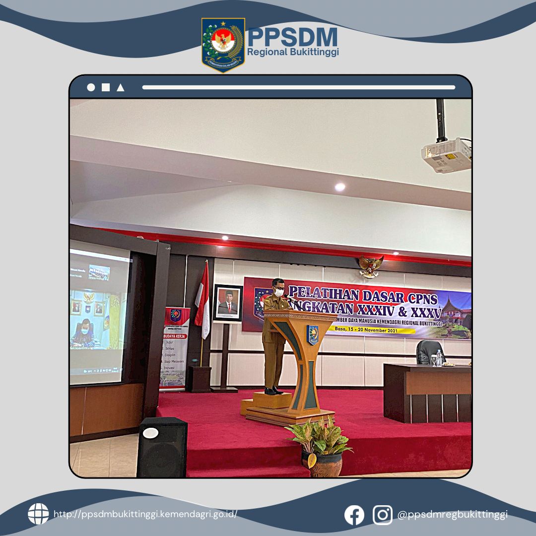 Kegiatan pembukaan di awali dengan laporan oleh Kepala Pusat Pengembangan Sumber Daya Manusia (PPSDM) Regional Bukittinggi, Sarjayadi, yang menyampaikan bahwa Pelatihan Dasar (Latsar) CPNS Angkatan 34 dan 35 Tahun 2021 dilaksanakan dengan metode Blended Learning, dimana terdiri atas 3 tahapan yaitu tahapan pertama pada tanggal 25 Agustus s.d 18 September 2021 dengan metode Distance learning , tahapan kedua tanggal 20 September s.d 13 November 2021 masa Habituasi di tempat kerja, dan tahapan 3 tanggal 15 s.d 20 November 2021 dengan metode Klasikal atau tatap muka. Peserta Latsar CPNS Angkatan 34 dan 35 sudah memasuki tahap pembelajaran Klasikal dan mengikuti pembelajaran tatap muka bertempat di lingkungan Kampus PPSDM regional Bukittinggi di Baso Kabupaten Agam.