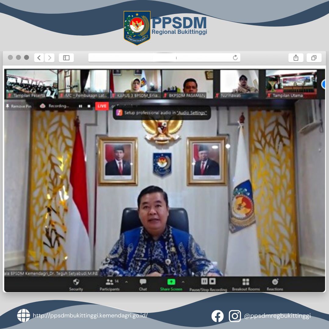 Rangkaian selanjutnya adalah arahan Kepala Badan Pengembangan Sumber Daya Manusia (BPSDM), Dr. Teguh Setyabudi, M.Pd, diawali dengan ucapan terima kasih kepada Pemerintah Daerah atas kerjasamanya hingga saat ini dalam melaksanakan berbagai kegiatan pengembangan kompetensi termasuk Pelatihan Dasar CPNS dengan PPSDM Kemendagri Regional Bukittinggi. Pelatihan Dasar bertujuan untuk membentuk PNS yang profesional, membentuk sikap dan perilaku PNS, nilai-nilai dasar PNS, kedudukan dan peran PNS dalam Negara Kesatuan Republik Indonesia, serta menguasai kompetensi bidang tugas.
