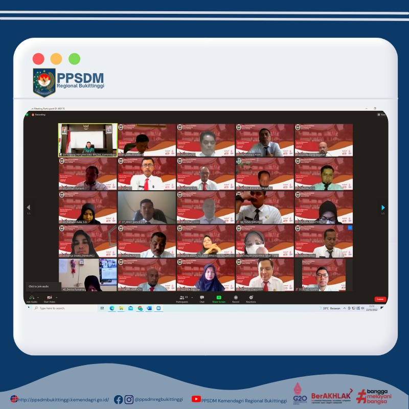 1. Berdasarkan laporan Kepala Pusat Pengembangan Sumber Daya Manusia Kemendagri Regional Bukitinggi, Sarjayadi, pelatihan diikuti oleh pejabat administrator dari 7 pemerintah kabupaten/kota yaitu Pemerintah Kota Tanjungbalai, Pemerintah Kota Pekanbaru, Pemerintah Kabupaten Indragiri Hulu, Pemerintah Kabupaten Kampar, Pemerintah Kota Solok, Pemerintah Kabupaten Sijunjung dan Pemerintah Kabupaten Tanah Datar.