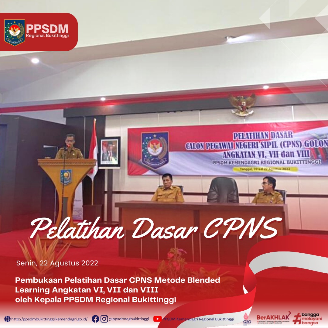 Tujuan dilakanakannya pelatihan dasar calon pns diselenggarakan untuk membentuk PNS profesional yang berkarakter yaitu pns yang karakternya dibentuk oleh sikap perilaku bela negara, nilai- nilai dasar pns, dan pengetahuan tentang kedudukan dan peran pns dalam nkri, serta menguasai bidang tugasnya sehingga mampu melaksanakan tugas dan perannya secara profesional sebagai pelayan masyarakat. Pelatihan Dasar CPNS diikuti oleh 120 peserta yang berasal dari Kabupaten Agam 45 Org, Kabupaten Rokan Hulu 15 Org, Kabupaten Kampar 15 Org, Kota Padang Panjang 15 Org, Kota Bukittinggi 30 Org.