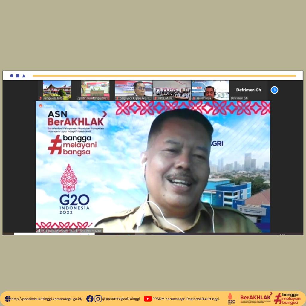 Sugeng mengingatkan 120 orang peserta bahwa pelayanan publik merupakan fungsi dasar dari birokrasi yang merupakan gabungan biro yang berarti meja dan krasi yang bermakna urusan. Urusan pelayanan yang harus melewati banyak meja menandakan birokrasi yang sulit dan menjadi keluhan masyarakat. Era saat ini semua urusan dibuat lebih singkat dan mudah serta tidak kalah penting terbebas dari korupsi, kolusi dan nepotisme. Tujuan tersebut bisa didapatkan salah satunya dengan menerapkan nilai dasar ASN. Latsar CPNS membekali peserta dengan nilai dasar ASN sehingga melakukan pelayanan dengan berorientasi pelayanan, akuntabel, kompeten, loyal, adaptif dan kolaboratif.
