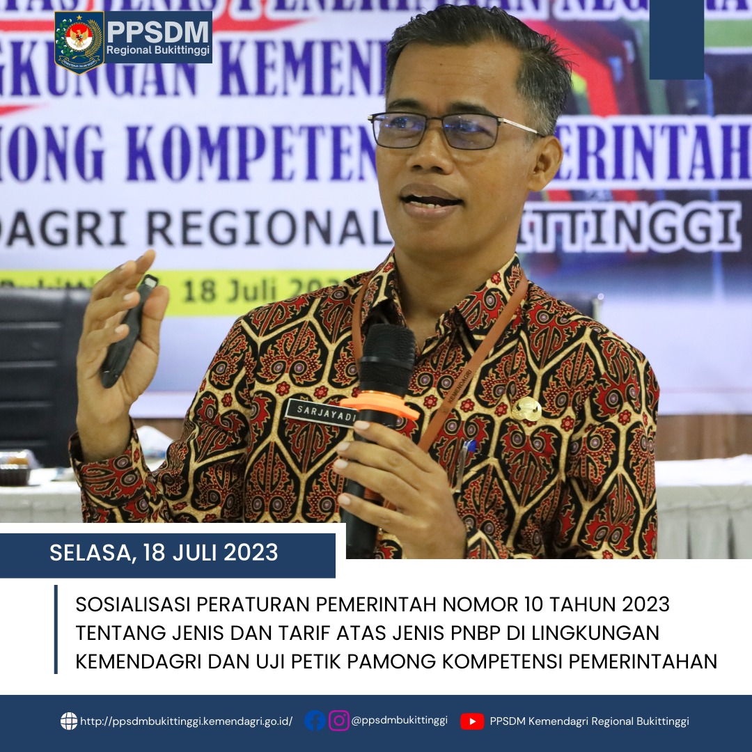 Sosialisasi bertujuan memberikan informasi kepada peserta terkait perubahan PP 64 Tahun 2013 menjadi PP 10 Tahun 2023 tentang tarif PNBP yang berlaku pada Kementerian Dalam Negeri. “perubahan yang terjadi salah satunya terkait tarif yang sebelumnya dikenakan pada tiap orang dalam satu kegiatan maka saat ini tarif adalah tiap orang per hari” jelas Sarjayadi. Perubahan lainnya adalah terkait sewa kamar asrama yang dikenakan pada tiap kamar per malam serta adanya tarif berkenaan dengan perlengkapan toilet atau aminities. Tentunya perubahan tersebut bertujuan meningkatkan PNBP hingga memberikan kontribusi lebih kepada negara. Sarjayadi melanjutkan “kelebihan penerimaan PNBP juga dapat digunakan untuk meningkatkan layanan dan kenyamanan sarana prasarana bagi peserta sehingga semakin banyak Bapak/Ibu melakukan kerja sama maka semakin meningkat kenyamanan yang akan di dapat oleh Bapak/Ibu sekalian”.