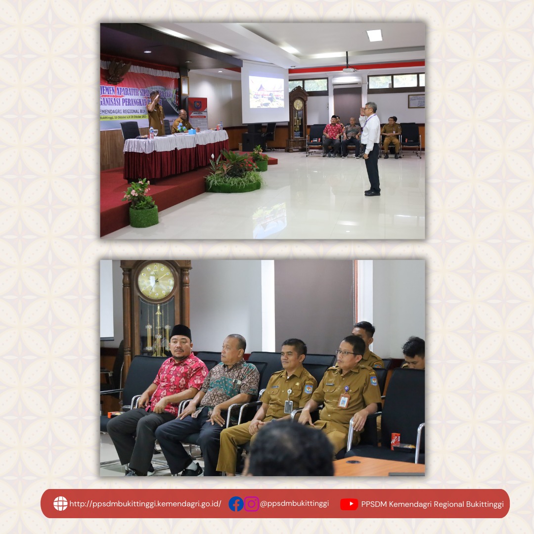 Kepala PPSDM Regional Bukittinggi, Sarjayadi, menyampaikan “Aparatur adalah ujung tombak pelayanan maka harus bertindak profesional dalam memberikan pelayanan. Upaya peningkatan kompetensi menjadi kebutuhan dalam pelayanan yang semakin berkualitas di masa datang. Kompetensi yang baik juga merupakan bagian dalam sistem merit pada manajemen ASN”. Selanjutnya sistem merit merupakan kebijakan manajemen ASN berdasarkan kualifikasi, kompetensi, dan kinerja yang adil, wajar dan tanpa diskriminasi. Sehingga intervensi politik sepatutnya tidak bisa mempengaruhi kinerja ASN dalam memberikan pelayanan.