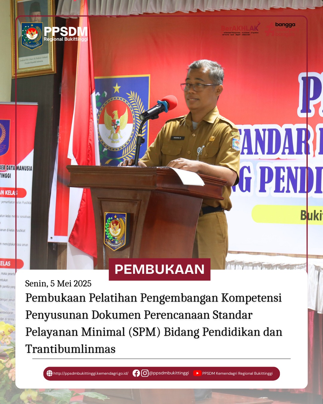 Pemenuhan kebutuhan warga negara merupakan tujuan kinerja pemerintah. Kebutuhan yang beragam pada konteks kewilayahan, adat istiadat dan kontak lainnya merupakan tantangan besar bagi pemerintah. Hambatan dalam upaya pemenuhan kebutuhan tersebut juga besar salah satunya keragaman jumlah penduduk masing-masing wilayah. Tantangan dan hambatan tersebut dapat dijadikan alasan adanya gejolak di masyarakat. Gejolak tersebut harus mampu diantisipasi salah satunya menghadirkan pelayanan yang standar bagi seluruh masyarakat. Pelayanan yang standar yang dimaksud mengacu pada Standar Pelayanan Minimal yang menjamin akses masyarakat sesuai indikator-indikator yang tertuang dalam Peraturan Pemerintah Nomor 2 tahun 2018 tentang Standar Pelayanan Minimal dan Peraturan Menteri Dalam Negeri Republik Indonesia nomor 59 tahun 2021 tentang Penerapan Standar Pelayanan Minimal. “Pelayanan minimal yang standar untuk semua masyarakat dan sesuai ketentuan akan mengurangi kemungkinan gejolak negatif. Harapannya negara kita tetap harmonis dan tercipta keserasian untuk semua” ungkap Sarjayadi selaku Kepala PPSDM Kemendagri Regional Bukittinggi dalam sambutannya.