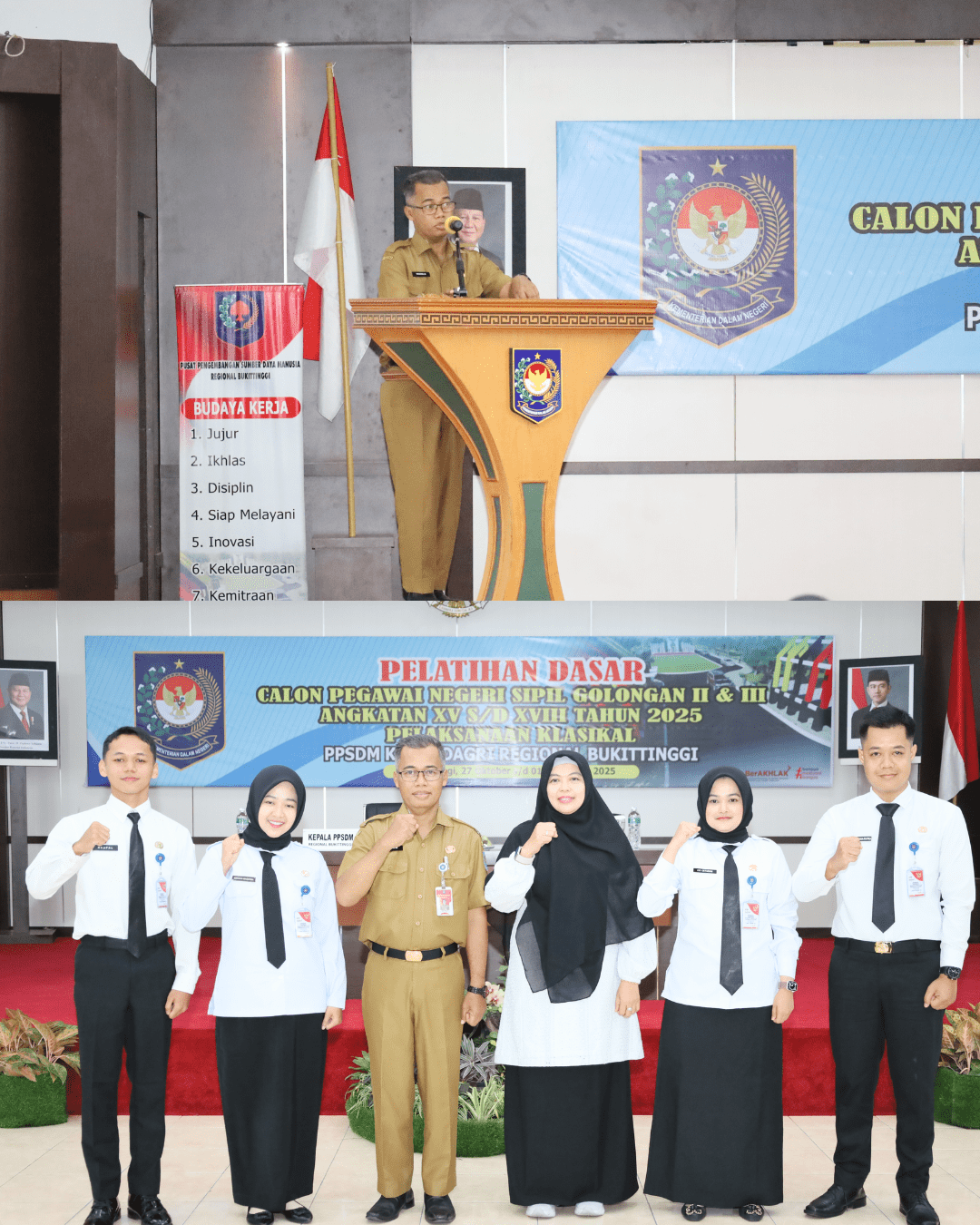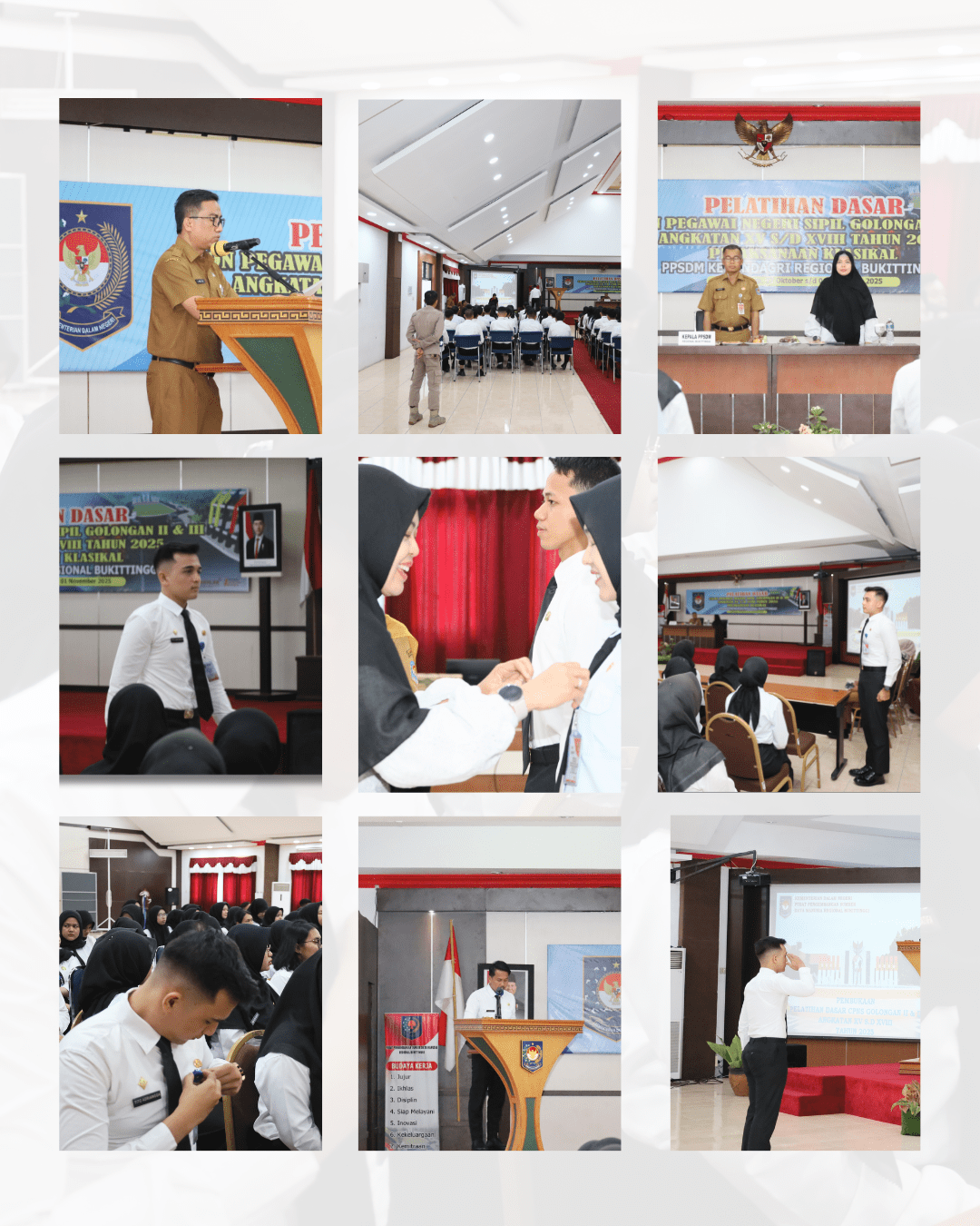Sarjayadi berpesan “Menjadi ASN bukan paksaan, bukan perintah tapi keinginan mandiri kita. Maka bersyukur harus ditumbuhkan dengan menunjukkan perbaikan kinerja dan kedisiplinan yang terus menerus”. Kinerja dan disiplin dikembangkan dengan serangkaian pembelajaran pelatihan dasar yang tujuan utamanya adalah penanaman nilai dasar ASN.