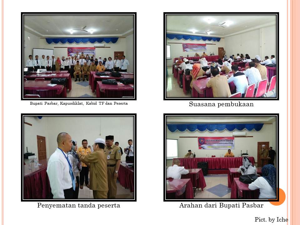 Sebagai penutup kegiatan pembukaan, Bupati, Kapusdiklat dan Kabid Diklat Teknis Fungsional menyematkan secara simbolik tanda peserta diikuti seluruh peserta.